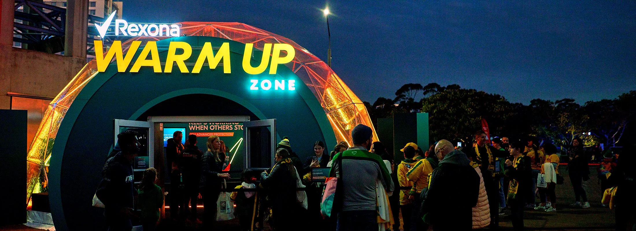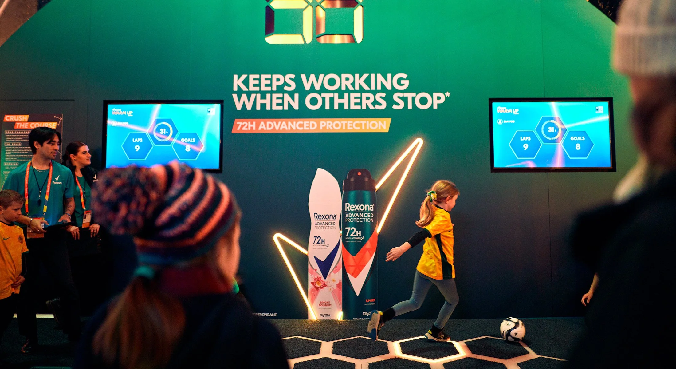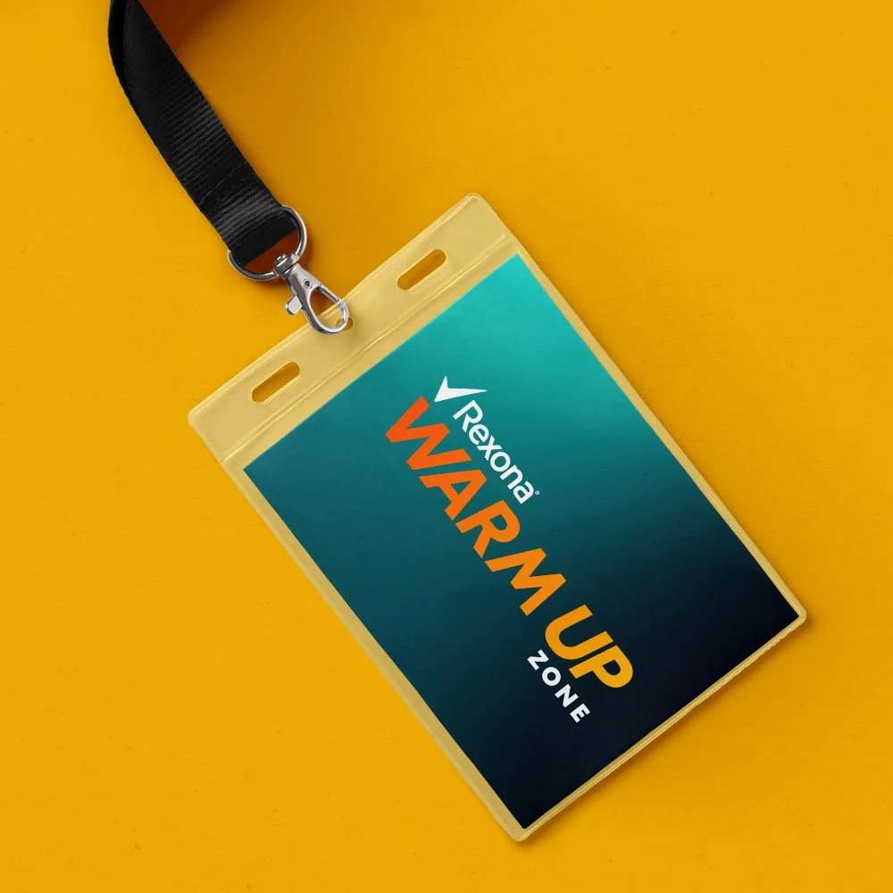 Rexona hosted the Warm Up Zone, from the physical to the vocal, to get fans ready before the game. The activation consisted of three activities that fans can complete in 72 seconds to emphasise Rexona’s messaging of 72 hours protection. As the design lead, I developed the lockup and the VI to use within the space and worked with the team and suppliers to create an unmissable experience. I ensured the messaging, branding and visuals were as cohesive, exciting and as striking as the main event.