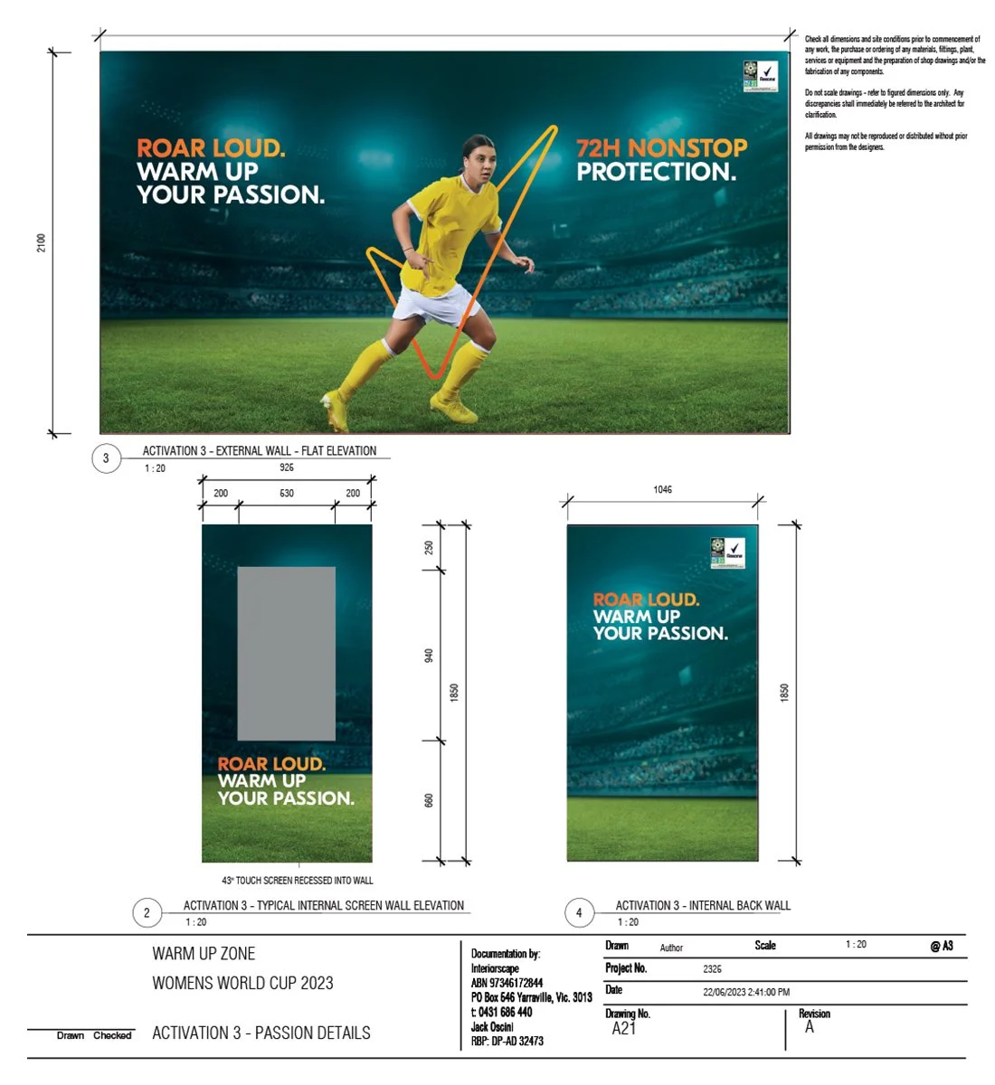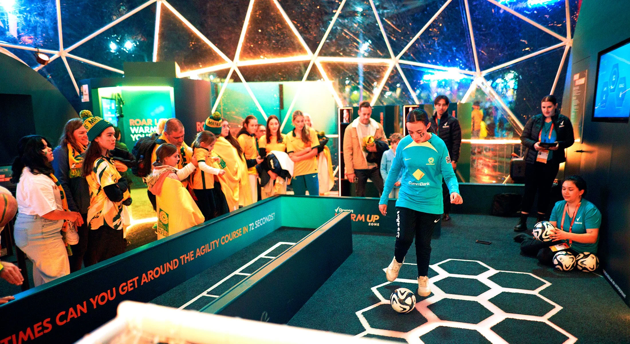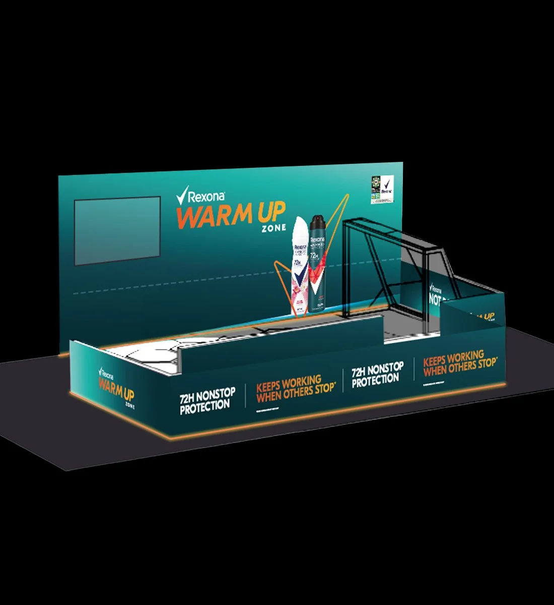 Rexona hosted the Warm Up Zone, from the physical to the vocal, to get fans ready before the game. The activation consisted of three activities that fans can complete in 72 seconds to emphasise Rexona’s messaging of 72 hours protection. As the design lead, I developed the lockup and the VI to use within the space and worked with the team and suppliers to create an unmissable experience. I ensured the messaging, branding and visuals were as cohesive, exciting and as striking as the main event.
