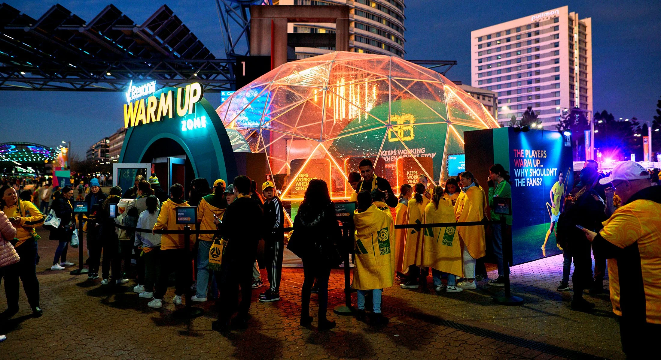 Rexona sponsored the FIFA Women's World Cup™ and wanted to actively engage and connect with enthusiastic fans. It’s not just players who experience physical and mental stress during a game. Watching a football match triggers the release of stress hormones, increasing heart rate and blood pressure. The players warm up…why shouldn’t the fans?