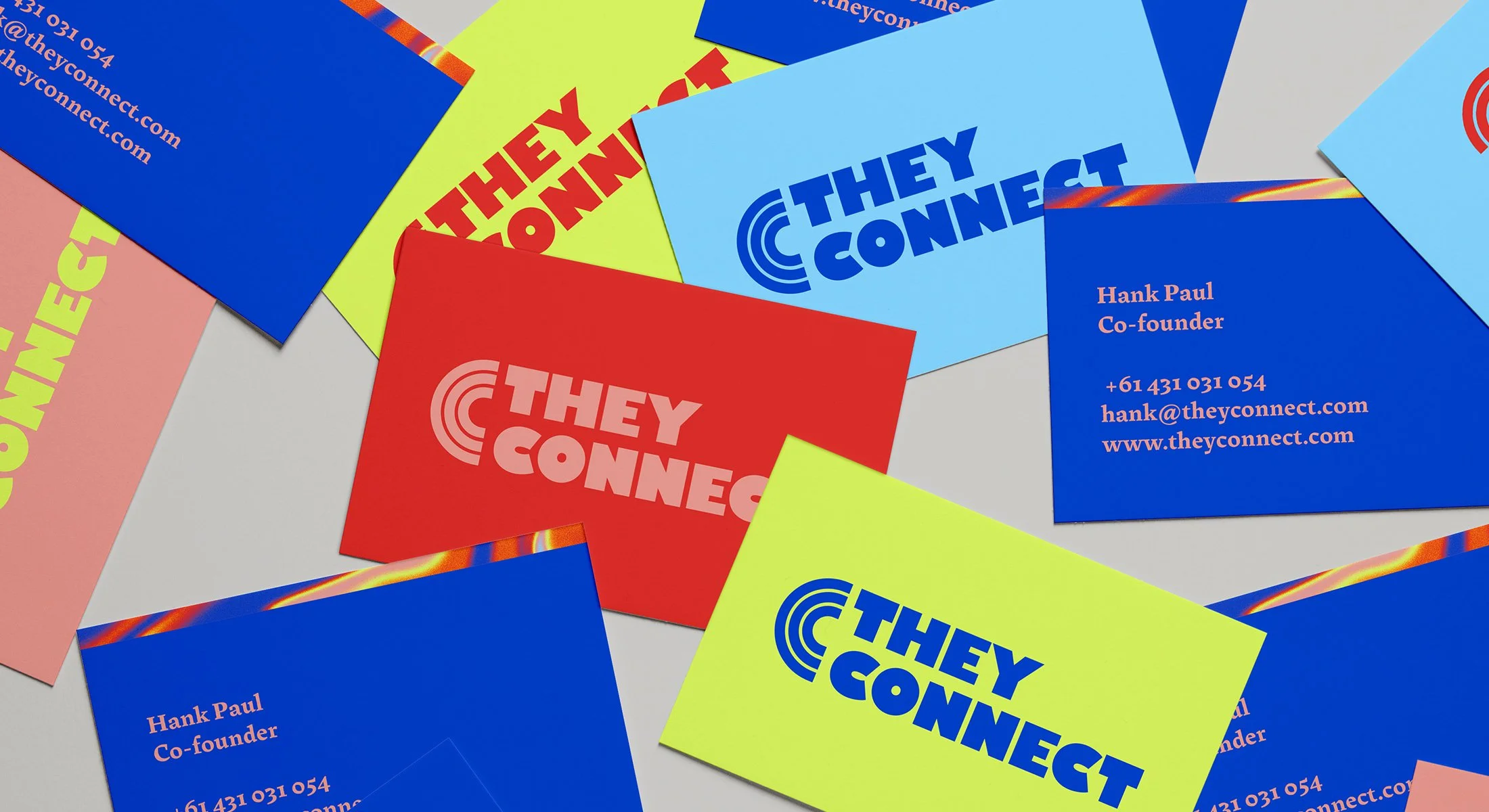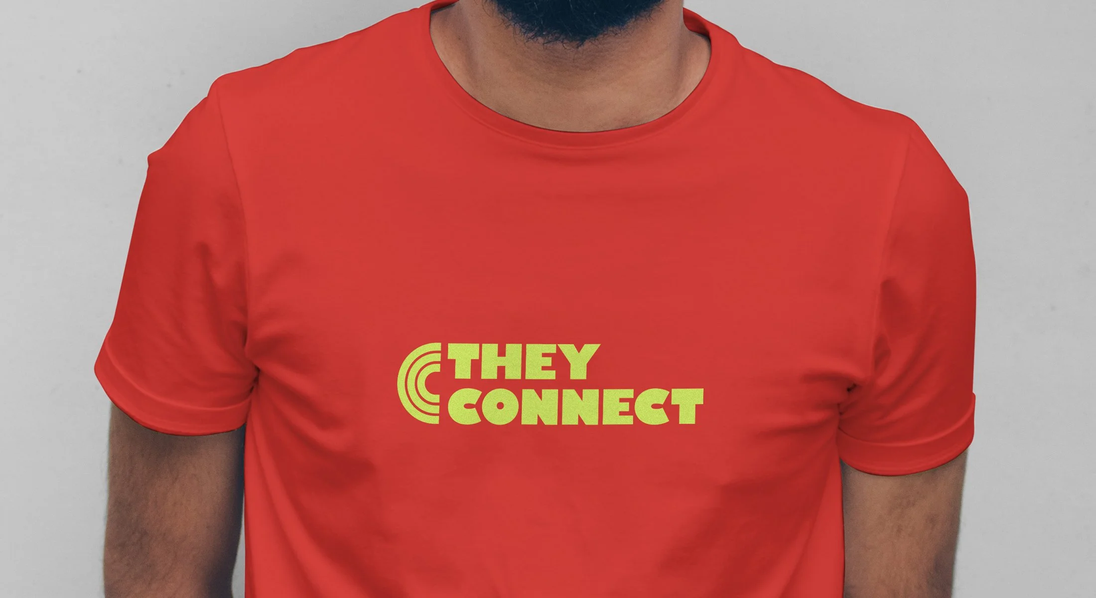 The ‘C’ symbol works as a triple signifier. It is a connector between the words, ‘They’ and ‘Connect’. It’s also the classic rainbow motif turned on its side, as a reference to LGBTQIA+ community. It is also the letter ‘C’ which can be used on its own as a recognisable symbol.