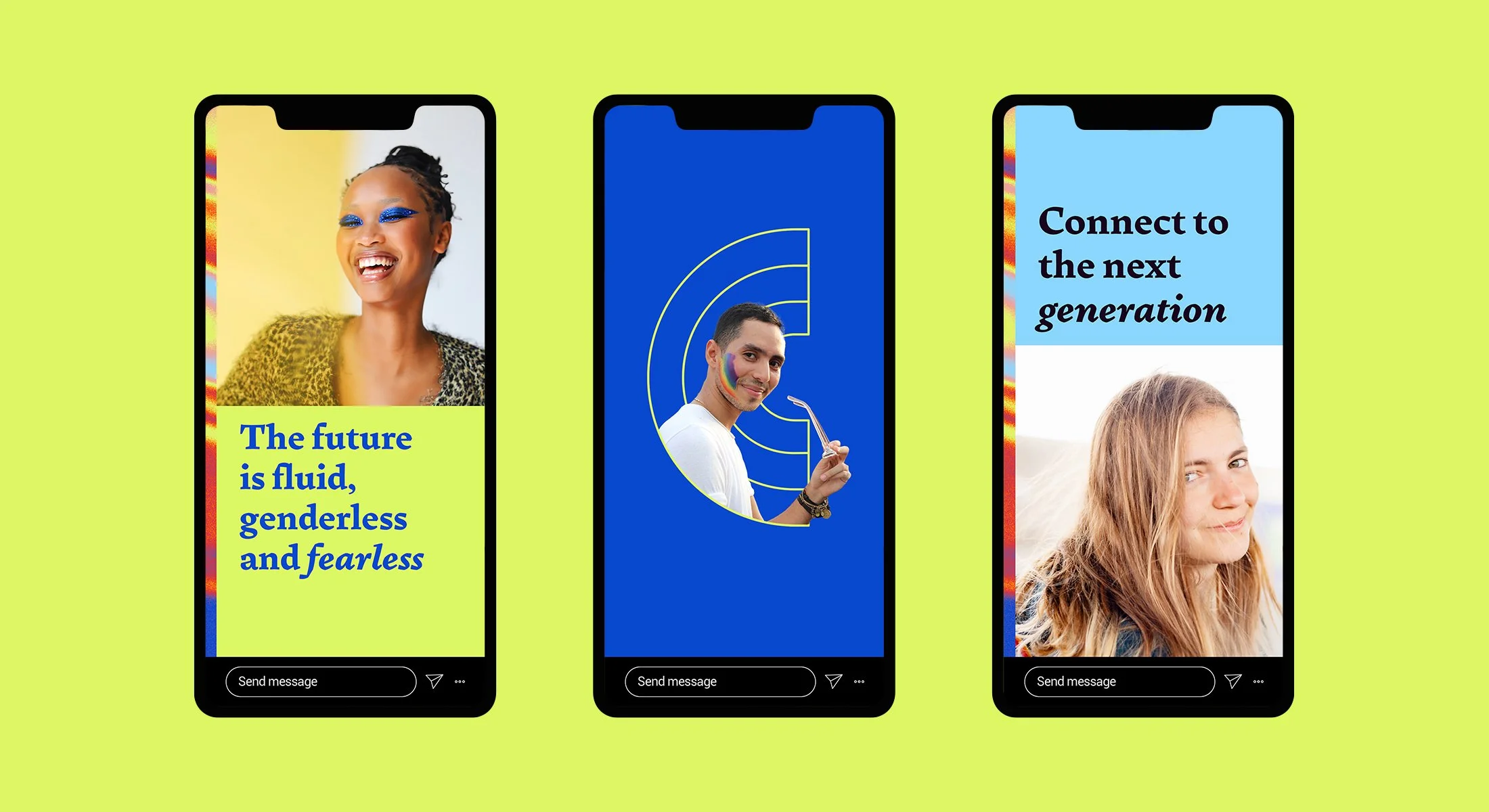 I created a bespoke gradient pattern that is unique to TheyConnect. It is used as an essential element to the visual language, and a representation of TheyConnect’s fluidity and ability to adapt and immerse itself within the vibrant, shifting landscape of gender, inclusivity and media.